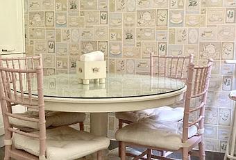 Las sillas que una de nosotras tiene en la cocina son conocidas como sillas Chiavari o Tiffany. La mesa a la que acompañan se encontraba anteriormente rodeada por otros cuatro asientos de madera que, uno de nuestros hijos fue rompiendo con la manía de apoyarse sobre las patas traseras una y otra vez... Él las iba descuajeringando, y nosotras encolando... Pero nunca terminaron de quedar bien del todo. Así que, un día, harta de unas sillas tan inestables, la tentación llegó en forma de éstas Tiffanys, y nada menos que en color rosa... Seguro que las habréis visto más de una vez en bodas, bautizos y comuniones, pues son las reinas de ceremonias y celebraciones, entre otras cosas, por su versatilidad a la hora de ser decoradas... Está claro que en nuestro estilo no está el añadirles nada que no sea un cojín para hacer su uso más confortable... Pero, aun así, destilan cierto aire festivo y chic, cualidades que han hecho de nuestra cocina, un lugar más acogedor... ¡Y que se cuide mucho nuestro niño de romperlas! Foto Foto Y a la vista está que las Chiavari también son muy aptas para decorar nuestros hogares, lejos de la pompa y el boato al que suelen estar acostumbradas…