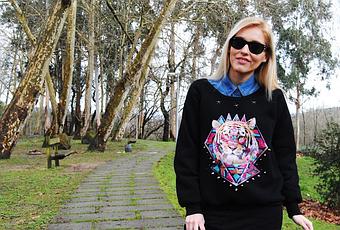 Tenía muchas ganas de una sudadera de este estilo desde que vi la archiconocida y saturada sudadera de Kenzo, así que esta de CHICNOVA me venia perfecta. Normalmente las sneakers solo las utilizo con pantalones pero por cambiar esta vez me decidí a llevarlas con falda para contrarrestar, ya que con la sudadera y las sneakers el look ya quedaba bastante casual.