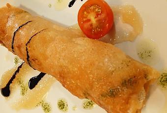 Extendemos una hoja de pasta filo, le ponemos un par de cucharadas de esta salsa, la cerramos en forma de rulo y la freímos en abundante aceite caliente, también las podemos hacer en la freidora de aire pincelándolos con aceite y aquí tenemos unos tigres preparados en cocina de vanguardia.