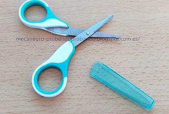 Son unas tijeras especialmente diseñadas para cortar las uñitas de los bebés.Encontramos muchas tijeras del estilo en el mercado, de diferentes marcas, formas y colores... estas de las que os hablo son de la marca HIPPOS, marca blanca de Mercadona en lo que a productos infantiles se refiere. Esto nos garantiza que su precio está muy ajustado.Seguro que habéis visto alguna vez alguna de estas tijeras. Su diseño, a priori, es muy similar al de unas tijeras escolares; tiene unos agujeros redondeados por donde metemos los dedos para usarlas, está hecha de plástico (excepto las hojas) y es de color blanco y azul clarito. Son pequeñas de tamaño. Lo que las diferencian de unas tijeras escolares son sus hojas; terminan en punta, como un sistema de seguridad para evitar accidentes con los más pequeños (ya sabemos que cortar las uñas a un bebé es un trabajo laborioso ya que generalmente suelen menear mucho los brazos y de terminar en punta, podríamos clavárselas sin querer). Estas hojas son de metal, suelen estar lo suficientemente afiladas para poder cortar las uñas (incluso las nuestras, que son más duras) y tienen un capuchón que impide que los niños puedan abrirlas por si solos.Aunque sean unas tijeras especialmente diseñadas para cortar las uñas de los más peques, también pueden cortar otras cosas como papeles y demás. No obstante, yo recomiendo usarlas solo para lo que fueron diseñadas pues cortando otras cosas "maltratamos" las hojas y pueden perder precisión.