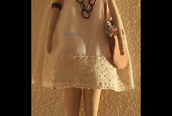 Sí, una nueva tilda con un estilo muy de moda este verano, el Boho Chic.Hombros al descubierto, vestido de lino con puntillas, bolso de ante, botas y melena al viento con coronita de flores.Como complementos, pulseras y cadena en bronce.!Me encanta!