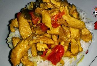 En una sarten ponemos un chorrito de aceite, una vez caliente ponemos la cebolla y los pimientos cortados en juliana. Cuando esté pochadito añadimos la pechuga de pollo en tiras ponemos un poquito de sal, removemos y dejamos que se hagan las pechugas. En un bol añadimos el yogur, dos cucharadas de Ras Hanout y lo añadimos a la sarten donde tenemos la pachuga y la verdura. Removemos bien, bajamos el fuego y dejamos unos 5min, apagamos el fuego y reservamos.