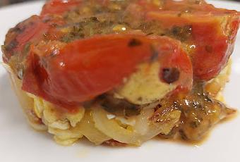 Tan sólo queda emplatar utilizando unos aros para el timbal: primero el revuelto y después los tomates y… ¡LISTO!