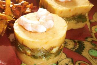 Timbal de langostinos y boniatos. Quizás también te interese ver otras recetas con langostinos como Ensalada de papaya y langostinos.
