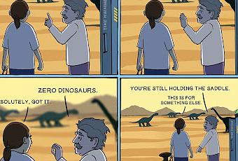 - No, no. No puedes montar dinosaurios.