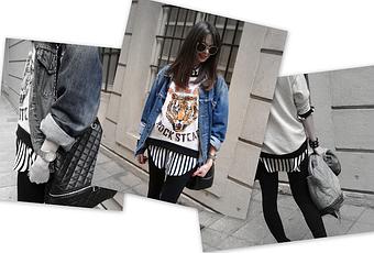Hola chic@s!!!! Si en un post anterior os hablaba de una de las tendencias de esta temporada, las rayas en black & White, pues hoy os muestro una de las primeras prendas con la que he sucumbido a este print, esta camisa de rayas de Zara. En esta ocasión le he quitado protagonismo al combinarla con la sudadera del tigre con tachuelas en los hombros,que ya os mostraba en un post anterior y para completar el look la chaqueta vaquera vintage que rescaté del baúl de los recuerdos y no me puede gustar más!! Necesitaba un look para patear la ciudad estas fallas, así que opté, cómo no? por las sneakers, un look cómodo y divertido ¿no os parece?
