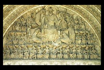 Tímpano de la iglesia de MoissacEjemplo clásico de la decoración escultórica en el tímpano de la portada. En este caso, el tema es el Juicio Final.