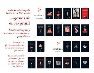 Eutelequia (a saber, la editorial que me publica) ha lanzado para esta Navidad una oferta irresistible: todos sus títulos con gastos de envío gratis. Entre ellos (of course), Tinta y oro y Los hombres de mi almohada (he venido aquí a hablar de mi libro, qué pasa) y los de mi mejor amigo de mi alma y de mi corazón, Germán San Nicasio: La cárcel de Jackson Pollock y Diario de un escritor delgado (que me perdonen el resto de compis, pero hoy le toca a él).