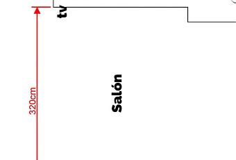 La distancia máxima que podíamos tener era desde la pared donde ibamos a poner el sofá (en este ejemplo 3,20cm) y habia que restar unos 30-40cm ya que pretendíamos comprar un sofá con respaldo, (somos así, normalitos y nos gustan apoyar la espalda), el respaldo como mínimo tiene 15cm de grosor y nuestra cabeza también tiene cierta profundidad…