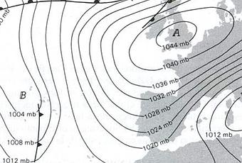 Presencia del anticiclón de las Azores en verano: tiempo seco y caluroso.