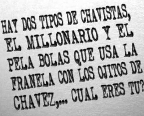 La verdad es que más allá de temas culturales, educativos y socioeconómicos, el que aún defiende al chavismo está defendiendo la miseria como forma de vida, sea el millonario o sea el de la franelita. ¿Cuál eres tú?