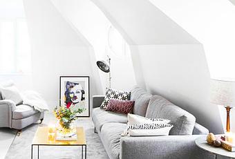 No desesperéis si tenéis un espacio con paredes extrañas y ángulos imposibles. La mejor opción es pintar de blanco (o algún tono claro), para restar importancia a esta dificultad, y añadir elementos decorativos en el suelo, a partir de la línea visual de los muebles, para que así la atención se centre en estos puntos, y no en las paredes y el techo. Por supuesto, no decorar las paredes para que no destaquen más.