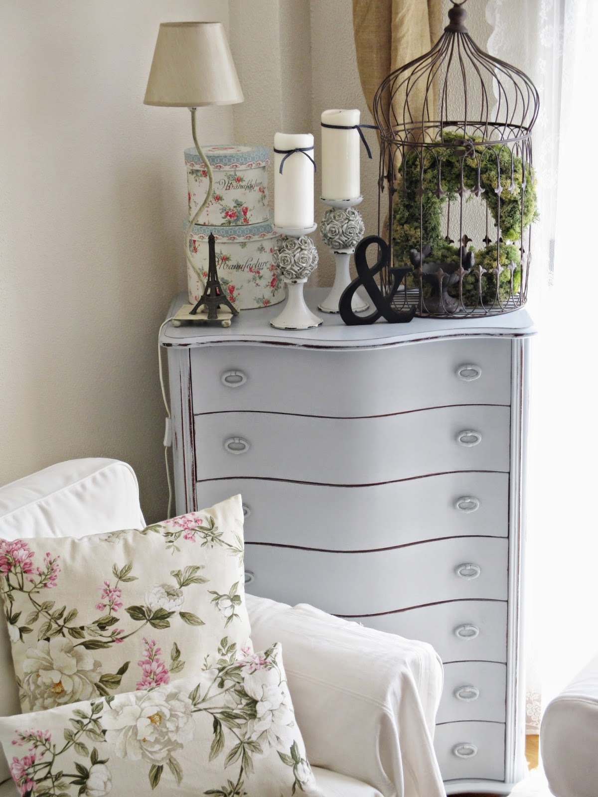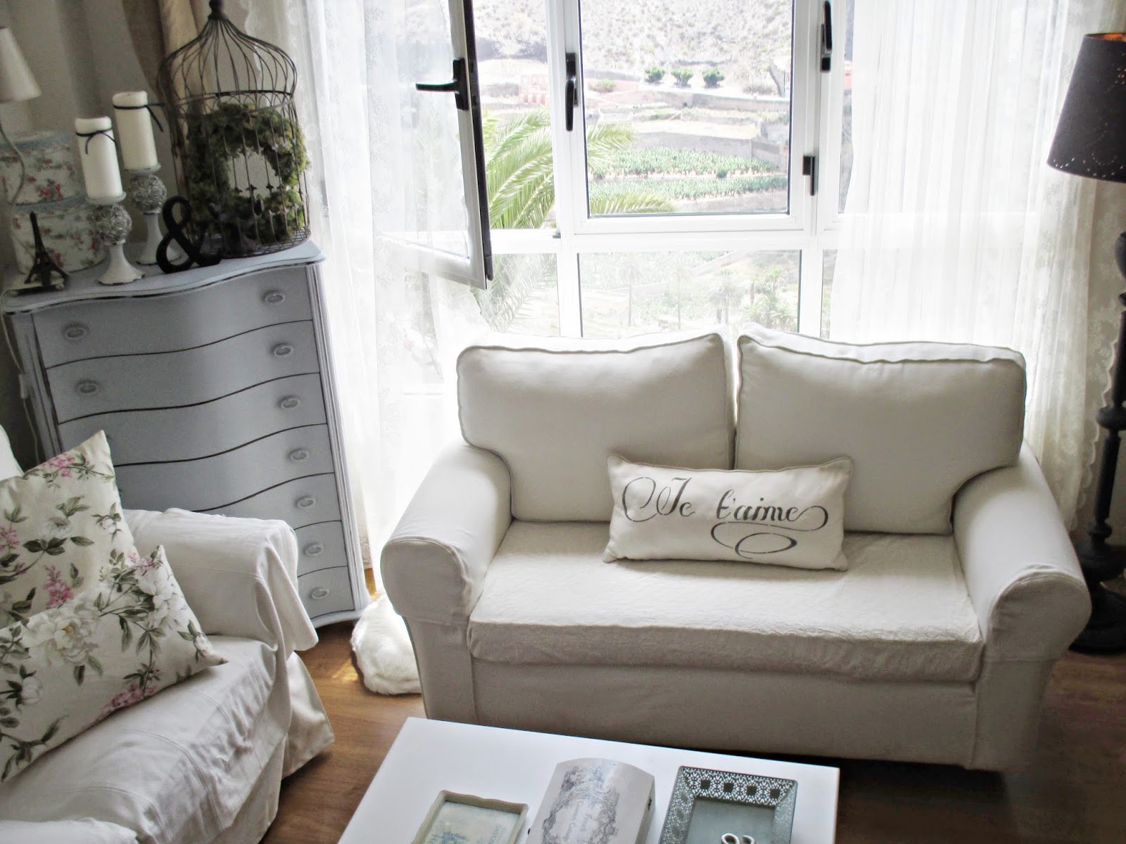 Busqué una tela adecuada, loneta en color crudo, me hice con la escalera y, oteando el horizonte desde lo alto, empecé a coser.....