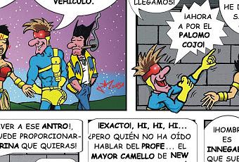 Hoy presentamos la entrega núm. 62 de La Patrulla Vengadora (cobra 100$ la hora), probablemente el cómic para adultos con el humor más ácido y corrosivo de toda la red. Ahora resulta que justo cuando nuestros protagonistas están a punto de alcanzar el lugar donde ocultan su curioso transporte aéreo, su nueva acompañante, inexplicablemente, parece que opta por regresar al sórdido Club del que acaba de ser rescatada. ¿Podrán convencerla de que se quede con ellos, o finalmente los abandonará haciendo fracasar su misión?. Eso sí: recordad que si sois recién llegados, para saber de que va esto podéis leer números atrasados con sólo pinchar aquí: