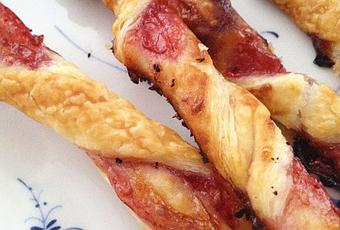 – Poner una fina capa de mermelada de frambuesa por encima del hojaldre con una cucharilla.