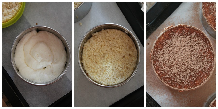 Una vez desmoldado cortamos unos discos con los aros metálicos donde montemos el tiramisu después, los cortamos a la mitad en horizontal y los reservamos.