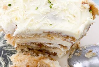 - Alisáis la superficie con una espátula y adornáis con chocolate blanco rallado ralladura de lima y limón.