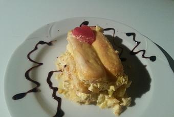 Una variante fresca, un invento de mi pareja Dora, para celebrar mi santo la semana pasada. Realmente rico y todo un descubrimiento. En lugar de café, ha mojado las galletas en la leche, por el resto, queda el procedimiento de un tiramisu clásico (aquí la receta).