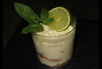 Ingredientes:- Para el baño de los galletas:o 150 gramos de agua.o El zumo de tres limas.o 60 gramos de azúcar.o Un chorro de ron.o La ralladura de una lima.o Un puñado de hierbabuena.- Para el tiramisú:o Galletas tipo María.o 250 gramos de queso Mascarpone.o 400 gramos de nata para montar.o La ralladura de una lima.o El zumo de media lima.o Cuatro cucharadas de azúcar.- Para decorar:o Limas y hierbabuena.Elaboración:Preparamos el baño de las galletas, en la receta original de nuestra compañera son bizcochos como el tiramisú tradicional, pero hace unos meses en un experimento de tiramisú con mango cambié los bizcochos por galletas y me quedó tan rico que ahora lo hago así. Bueno el baño de los bizcochos consiste en echar todos los ingredientes en un cazo ponerlo a hervir y apartamos del fuego para luego bañar las galletas o los bizcochos.Por otra parte, ponemos en un bol el queso crema, el azúcar, la ralladura de lima y el zumo de lima. Una vez que está mezclado, ponemos la nata y comenzamos a montar toda la mezcla. Metemos a la nevera.Ahora cogemos bañamos las galletas y los bizcochos y lo ponemos en el fondo de un molde que habremos forrado con papel de horno, yo para que fuera más fácil de comer lo realice en vasitos, entonces colocamos una capa de galletas o bizcochos y otra de crema, así hasta que se termine a mi me salieron tres capas. Por supuesto tenéis que terminar con una de crema. Al final decoráis con un trozo de lima y hierbabuena y ya está listo para servir.