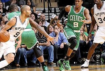 En Boston, Jermaine O´Neal volvió a vestirse de corto para acompañar a sus compañeros. Tras someterse a una cirugía hace dos meses el pívot de los Celtics se mostró nuevamente sólido y con muchas ganas.Sin embargo, el punto referencial debe materializarse sobre el trío Rondo-Garnett-Pierce. Los tres disputaron un partido muy completo superando la veintena de puntos. Rajon Rondo, (22 puntos, 14 asistencias, 5 rebotes y 0 pérdidas) volvió a deslumbrar ante los Spurs. Por su parte, Kevin Garnett logró sumar 20 puntos y 9 rebotes, así mismo Paul Pierce se quedó a tres asistencias de lograr un nuevo triple-doble. 21 puntos, 11 rebotes, 7 asistencias, 1 robo y 1 tapón para "The Truth".