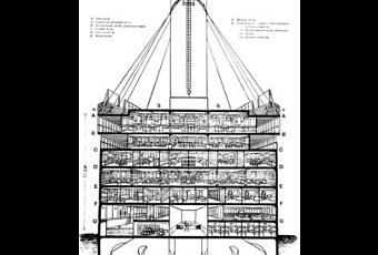 El transatlántico contaba con 9 cubiertas: A, B, C, D, E, F, G, de calderas y de máquinas. Instalaron 20 botes salvavidas de tres tipos: