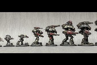 Dicen que una imagen vale masque mil palabras.Pues en este caso,es bien cierto. Aquí tenemos una evolución por alturas de los Knights y Titanes, de diferentes clases, del juego Adeptus Titanicus. Desde el Knight Questoris hasta el Titan clase Warmaster, el ultimo que ha salido. Y aún queda por ver el Titan mas grande de todos, el clase Emperor.