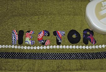 El domingo estuvimos de cumpleaños de mi sobrino Héctor, y de regalo le hicimos una sudadera con capucha, de estas que les gustan a los chavales y además para que tuviera un recuerdo mío le hice una toalla decorada en patchwork con el nombre de Héctor. Lo que hice fue comprar unas cuantas toallas de lavabo de varios colores y las estoy tuneando y en algunos cumpleaños las voy dando, es un regalo artesano y personalizado y suele gustar bastante.