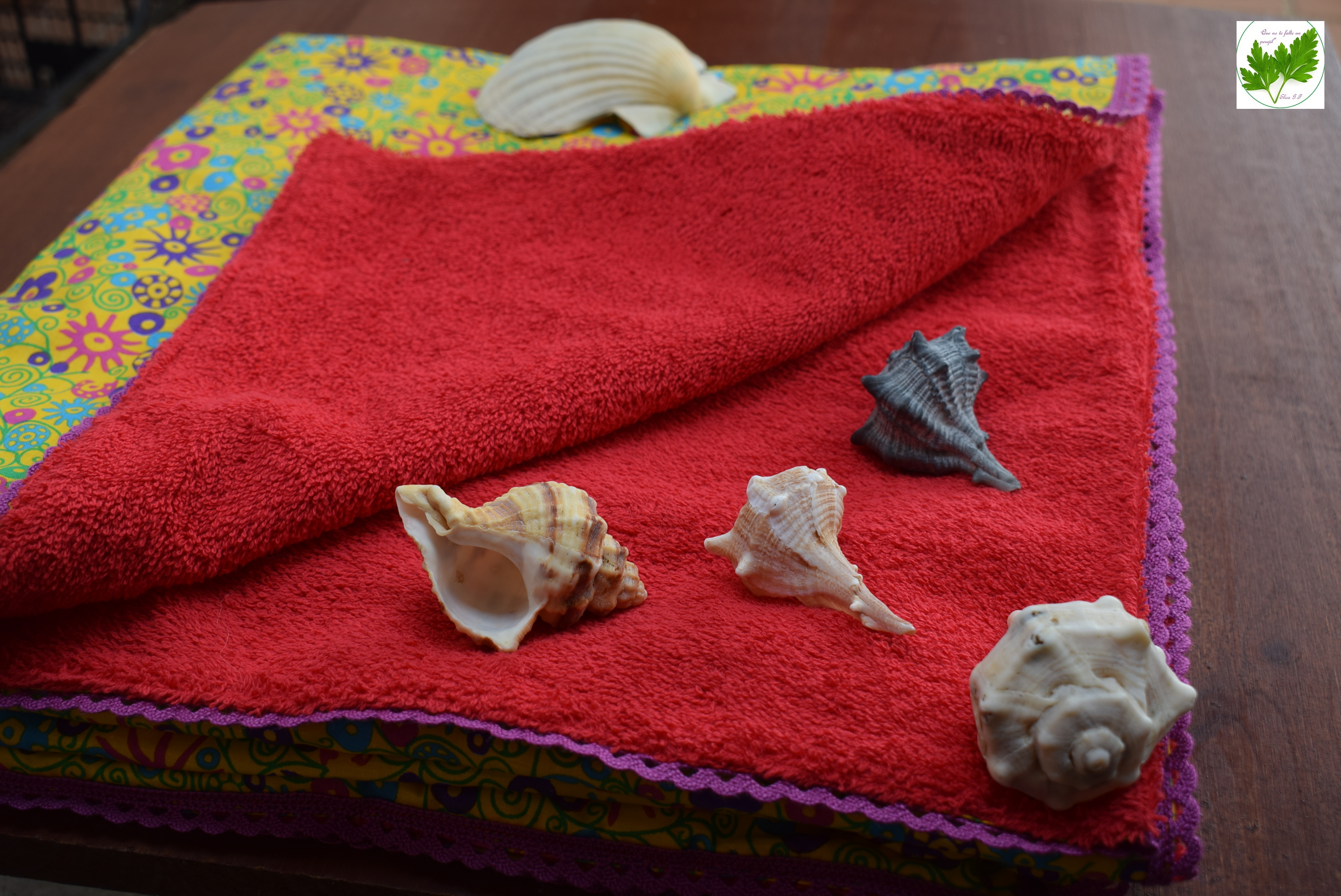 Corta las dos telas con las mismas medidas. Encara las telas por el revés. Estira bien y pon alfileres para que queden sujetas mientras las unes. Cose a máquina dejando una abertura suficiente para poder dal la vuelta y queden las telas del derecho. Cose la abertura. Adorna con la cinta o puntilla que hayas elegido.