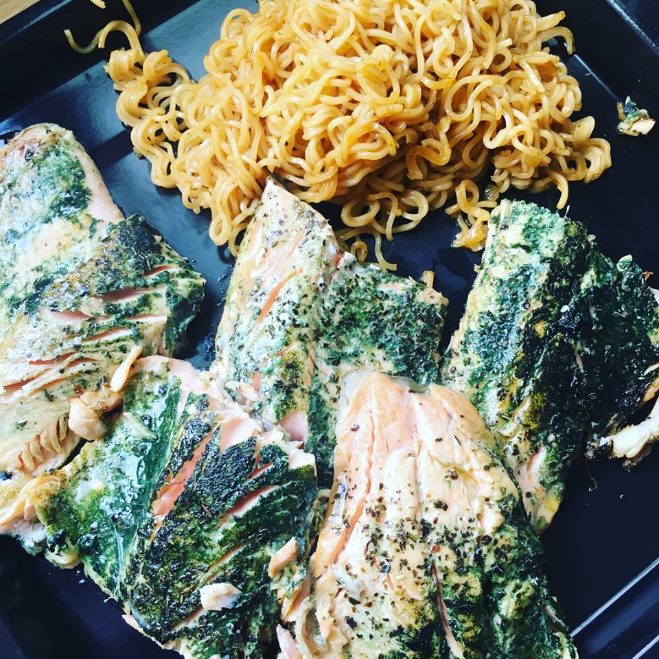 Yo seguí cocinando, que no me queda otra claro ajaj, unas veces me esmero un poco más.. Como este salmón con algas y fideos chinos, y otras pues tiramos de los macarrones de siempre..., pero y eso no me lo negaréis, cuando hacéis algo "distinto" que bien sienta..., y lo digo yo que no me gusta cocinar!!