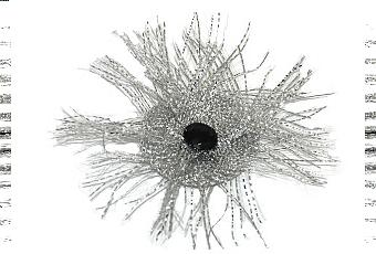 Es un modelo redondo con una piedra negra en el centro.