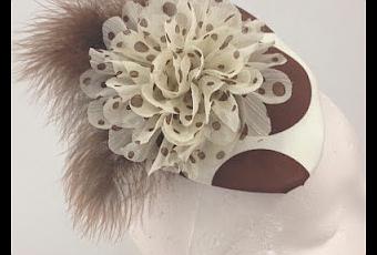 La mezcla de estampados en positivo y en negativo hacen que este tocado sea divertido y juvenil. Este tocado además de para bodas creemos que es muy apropiado en comuniones.