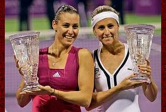 Si bien es cierto que ya podían darse por cumplidas con los seis laureles y el número uno del mundo como pareja, Gisela Dulko y Flavia Pennetta no se conformaron y superaron -en casi una hora y media de partido- a Kveta Peschke y Katarina Srebotnik por 7-5 y 6-4, en la final del dobles del Masters Femenino.Vale recordar que la dupla italoargentina ya había neutralizado al binomio europeo en el match definitorio de Stuttgart y Montreal, manteniendo una marca perfecta con cuatro victorias en igual cantidad de cotejos disputados. Así que a las consagraciones en Miami, Stuttgart, Roma, Bastad, Montreal y Moscú, ahora que hay que sumarles Doha en la temporada soñada para ellas.