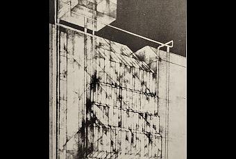 (Primeros dibujos. Se aprecia la voluntad de diseñar unmuro cortina potente, con diversos planos inclinados y,sobre todo, un gran cubo de coronación en una estructura externa)Bueno; en realidad es este: