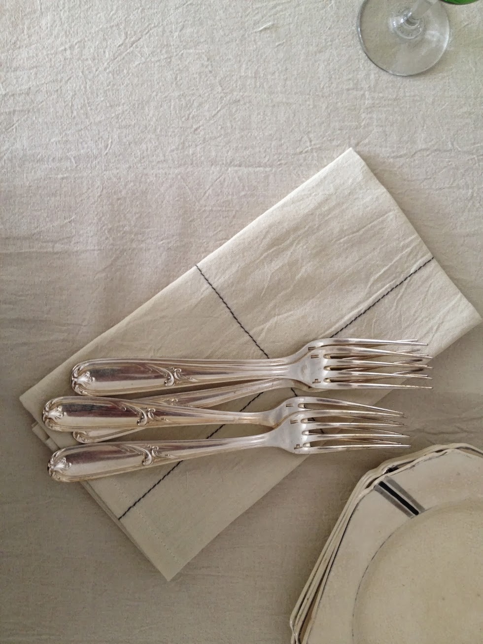 Comprando un mantel Lu, una toallita de lino con inicial bordada.