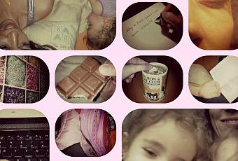 Bebiendo amor familiar Soñando en escribir un libro Estrenando zapatos de tacón Oliendo a niñas Entretenido pintarme los ojos Jugando a ahorrar Practicando el cepillado de dientes con l'aînée