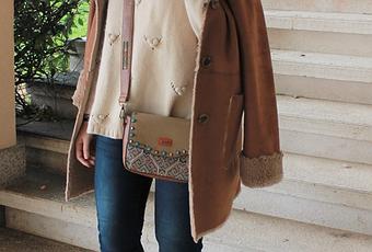 En esta ocasión os enseño todo prendas ya conocidas en el blog, que en mayor o menor medida han ido saliendo en el blog en otras temporadas, como el abrigo de antelina y pelo o el sweater de libelulas y borlitas. Las botas tipo Ugg de MaryPaz o el sombrero fedora de Primark. Bolsito en tamaño medio-pequeño, basico de temporada que tiene mil y una posibilidades La nueva prenda que os enseño en este outfit es mi nuevo bolsito de serraje en tonos nude con colores etnicos tanto en la correa como en la parte delantera del mismo. Un bolso versátil por su tamaño con mucha cabida en el interior a pesar de ser de un tamaño medio-pequeño, con correa regulable y que en ocasiones también podemos llevar de mano. Uno de esos básicos de invierno que se le da mil y un usos. ¿Qué os parece el resultado? Espero que os haya gustado. Besos y feliz fin de semana. Hoy toca reunión de amigos en cena de Navidad :) :) :) ¿Y vosotros ya estáis con las primeras comidas y cenas navideñas?