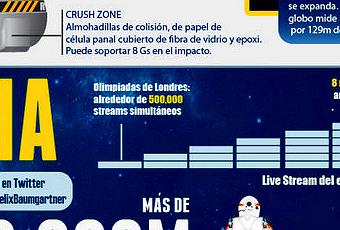 Miguel nos muestra datos personales de Baumgartner, como así también de su traje, la cápsula y el globo que lo elevaron a esas alturas, el espectacular salto y por último cifras de la social media relacionada con ese evento histórico.