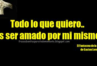 Todo lo que quiero es ser amado por mi mismo. -Frase de El Fantasma de la ópera de Gaston Leroux. Gastón Louis Alfred Leroux falleció el 15 de abril de 1927. Fue un periodista y escritor francés, famoso por sus novelas de terror y policíacas como El fantasma de la ópera.