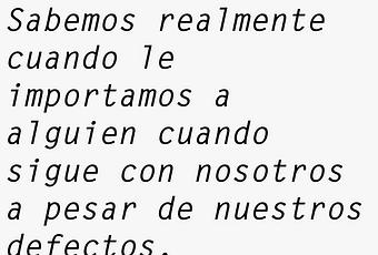 Es cierto que nuestras debilidades o defectos no deben ser cosas para sentirnos orgullosos pero también es cierto que solamente las personas que nos aprecian de verdad son las que están dispuestas a tolerar nuestros defectos y a ayudarnos a corregirlos por lo que algo bueno de tener defectos es que con ellos podemos saber quiénes son verdaderamente nuestras amistades, porque solo en las cosas y momentos difíciles se saben quiénes son las personas a las que les importamos.Es lamentable ver cómo mayoría de personas en esta sociedad cuando admiran a alguien con sobresalientes fortalezas, pero cuando miran a alguien con debilidades todos la mayoría lo critican y lo hunden en lugar de ayudarlo a mejorar, pero también es re confortable ver como a grandes personas que nos valoran de verdad y nos ayudan a mejorar nuestras fortalezas y defectos.Es muy grato saber que alguien te aprecia sin importar tus defectos y que solo quiere lo mejor para ti, a estas personas debemos responderles con agradecimiento y mejorando cada día pues si nos quieren merecen que les demos lo mejor de nosotros pues que nos quieran aun con nuestras debilidades no significa que debemos sentirnos bien con estas y no tratar de mejorar pues esto es solo una cualidad de mediocres e incompetentes.
