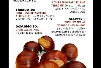 ESTOS SANTOS TE ESPERAMOS EN ALBERJERTEDel 29 de octubre al 1 de noviembre te esperamos en Alberjerte Valle del Jerte. Te proponemos unos Santos diferentes con concurso de karaoke y de disfraces, gran calbotada, Dj, menú especial de Todos los Santos... ¡Anímate!