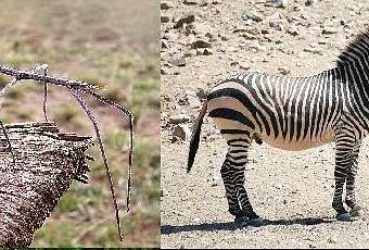 Distintos tipos de coloraciones. Arriba izquierda, el lagarto Agama aculeata con su coloración críptica. Arriba derecha, la serpiente Micrurus tener con su coloración aposemática. En medio izquierda, el insecto palo Ctenomorpha chronus y su coloración/forma mimética. En medio derecha, la cebra Equus zebra con su patrón de disruptivo de rayas. Abajo izquierda, el pavoreal Pavo cristatus y su coloración para atraer al sexo opuesto. Abajo derecha, las medusas Aurelia aurita con una coloración translúcida. Fotografías con licencia Creative Commons.Durante mucho tiempo, la coloración de las criaturas prehistóricas era terreno donde la imaginación hacía de las suyas y la ciencia nada podía hacer para decirnos con "los pelos en mano" de qué color era tal o cual criatura. Los artistas desbocaron la imaginación y algunos de ellos usaban coloraciones de animales modernos para reconstruir a aquellos que se habían ido. Eso era la regla, hasta la "revolución de los melanosomas". Pero ¿qué es eso? Un melanosoma es un orgánulo celular que contiene el pigmento conocido como melanina, el pigmento más común en los animales (en forma de eumelanina). Dependiendo de la cantidad y ubicación de los melanosomas, se producen diferentes patrones. Pero nunca se habían registrado en animales prehistóricos marinos.