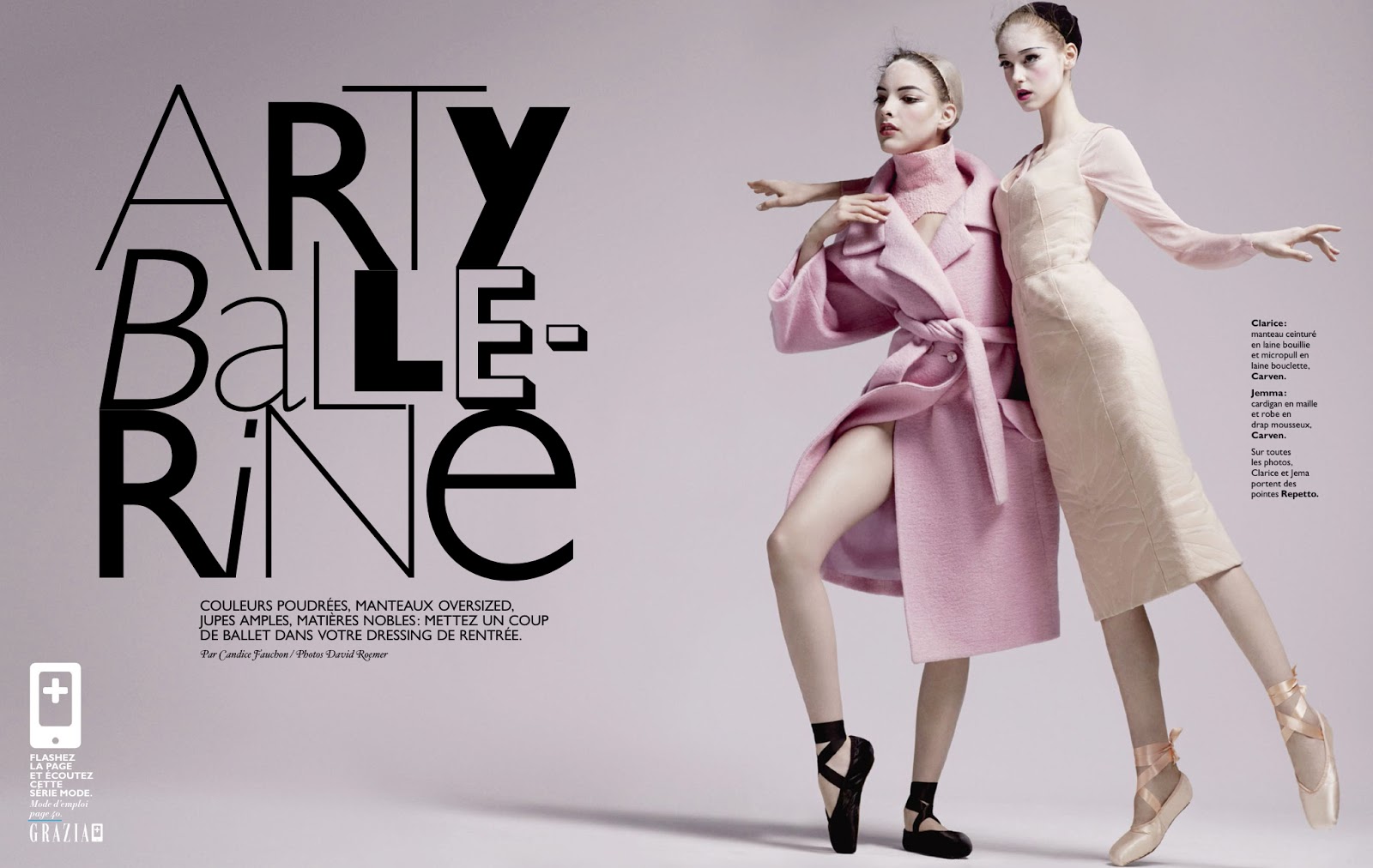 Vamos con otro ejemplo mas actual, este Magazine Arty ballerine en el que las modelos Clarice SilvaVitkauskas and Jemma Baines by David Roemer for grazia france 30th august 2013 intentan lucir unos modelos en puntas.
