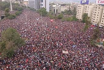 Hoy se convocó a la Mega marcha, todo Santiago estará en Plaza Italia, en este mismo momento se están congregando en la "Marcha más Grande de la Historia". El pueblo chileno salió nuevamente a la calle contra las políticas del gobierno de Sebastián Piñera. El milagro tecnocrático chileno de los Chicago Boys y los alumnos de Milton Friedman con una macroeconomía extractivista minera, finalmente mostró crudamente su otro rostro, al brindar una microeconomía miserable para enormes franjas de la población. En la cual para poder sobrevivir ante la ausencia de empleos de calidad, está la humillante industria del pobrismo, organizada por los tecnócratas del estado.Otra vez las calles de Santiago desbordan de jóvenes con carteles, trompetas, redoblantes, máscaras de gas, con sus cuerpos pintados, sus camisas intervenidas, en bicis, hasta en rollers y con banderas chilenas y mapuches. Esa alegría no sólo viene de la potencia de tomar la calle, sino que revela que nadie está agotado después de casi una semana de movilizaciones continuas. Al contrario: cada cartel, cada expresión de cada joven chileno grafica que tal vez por primera vez se sienten protagonistas de su propia historia.