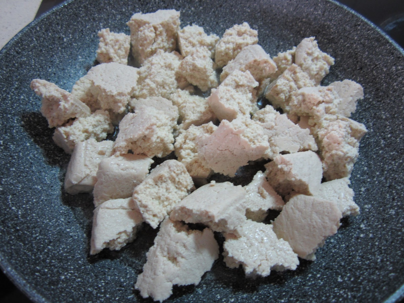 A mí me gusta darle a última hora un hervor fuerte para que se quede el tofu tostadito.