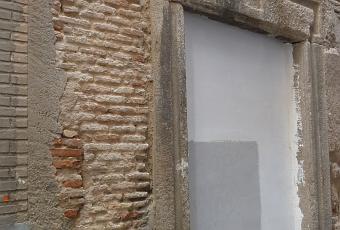 Sin embargo este callejón, que serpentea en forma de L, presenta en su codo un antiquísimo paramento, aparejado con ciclópeos sillares de caliza y granito, muy castigados por el paso del tiempo, formando un paredón monumental diseñado sin género de duda para quedar visto hacia una calle.