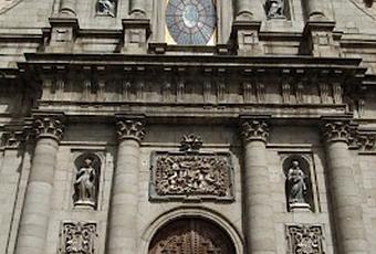 Para hacer este traslado, el Cardenal Lorenzana compró las casas que habían pertenecido a la Inquisición y algunas colindantes, recayendo la ejecución de las obras en el arquitecto Ignacio Haan. En el exterior, llama poderosamente la atención la doble escalinata de la fachada principal que da pie a la entrada del edificio; entrada formada por una gran portada con cinco vanos4 separados por columnas. En la parte superior, es notable el escudo del fundador sujeto por dos ángeles que tocan el clarín de la fama. Por su parte, el paraninfo se cubre con una bóveda de medio cañón ornamentada con casetones5 y es digno de ver el magnífico patio interior.