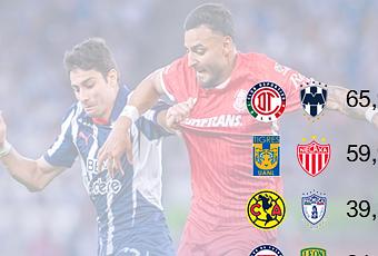 59,909 Tigres vs Necaxa39,342 América vs Pachuca34,244 Cruz Azul vs León