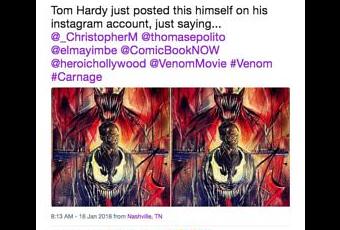 En la publicación puede verse una imagen de Hardy como Veneno rodeado por su némesis, Matanza. Además, el actor ha incluido el hashtag #Carnage, dando así más peso a la publicación. Está por ver si se trata de una revelación o de un simple guiño.