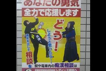 Se trata de un anuncio de una compañía que ofrece apoyo a las mujeres que quieran denunciar acoso sexual callejero. No es Japón el único país donde los sobones se han convertido en un problema nacional. Las cifras, sin embargo, están ahí: en 2004, dos tercios de las usuarias del metro y tren del área de Tokio confesaron haber sido acosadas en el viaje, lo que llevó a la implantación de vagones exclusivamente femeninos. Un número creciente de hombres también ha denunciado. El blog Angry Gaijin traduce algunas estadísticas, y habla también del acoso sexual en el trabajo. Algunos de los expertos que su autora cita consideran que las medidas segregadoras, aunque protejan en primera instancia a las viajeras, son una muestra de cómo las autoridades se muestran incapaces de canalizar la lucha contra un problema social que durante años ha sido visto como una simple travesura.