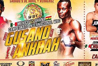Pelea de Box Prosper Ankrah vs Tomas "Gusano" Rojas en vivo se llevará a cabo desde el Auditorio Benito Juárez, Veracruz, Veracruz, México, bajo la promoción de Reginaldo & Oswaldo Kuchle (Promociones del Pueblo), sin dudas una gran pelea en donde Prosper Ankrah y Tomas "Gusano" Rojas buscará ganar la pelea con todo.